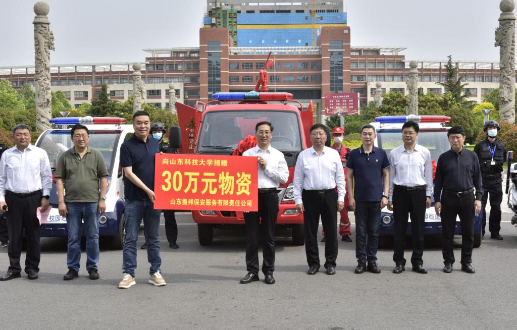 6月1日,在必一体育在线平台(中国)官网70周年华诞之际,山东振邦保安服务有限责任公司向学校捐赠校园巡逻车、消防车等价值30余万元的安防物资。