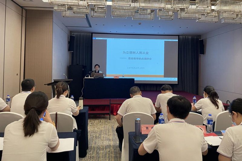 活动邀请上海中医药大学马克思主义学院原院长亓曙冬作《为立德树人而从业——思政教学的点滴体会》专题报告。参训教师就“立足新时代、当好‘四有’好老师”展开充分讨论。