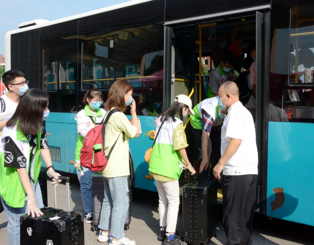 9月3日,是省外新生报到的日子,根据疫情防控要求,省外新生均需在南门进行核酸检测。为使新生报道更加高效有序,学校在南门设置核酸检测点,每相隔一米放置座椅供新生休息使用,做核酸检测时发放行李号码牌,检测完根据号码牌领取行李乘坐校园摆渡车,前往各宿舍接站点,待核酸检测结果出来后方可出宿舍自由活动。