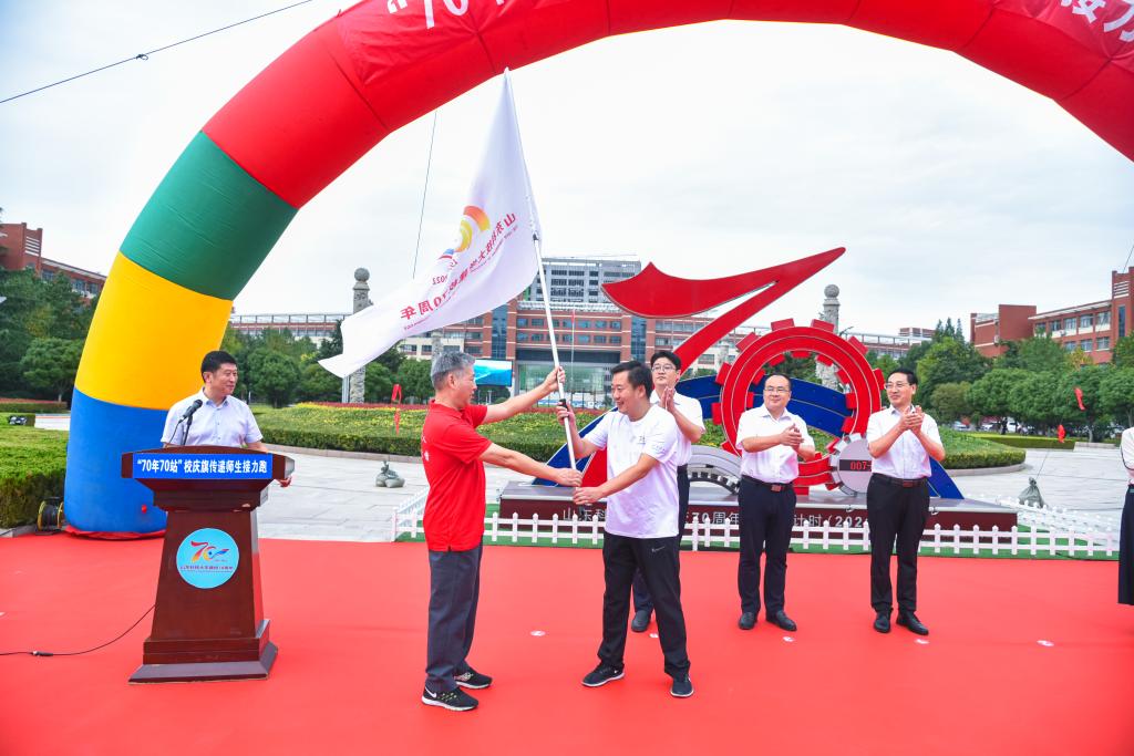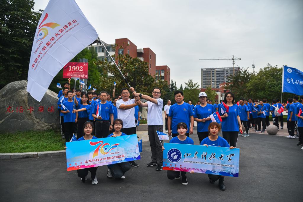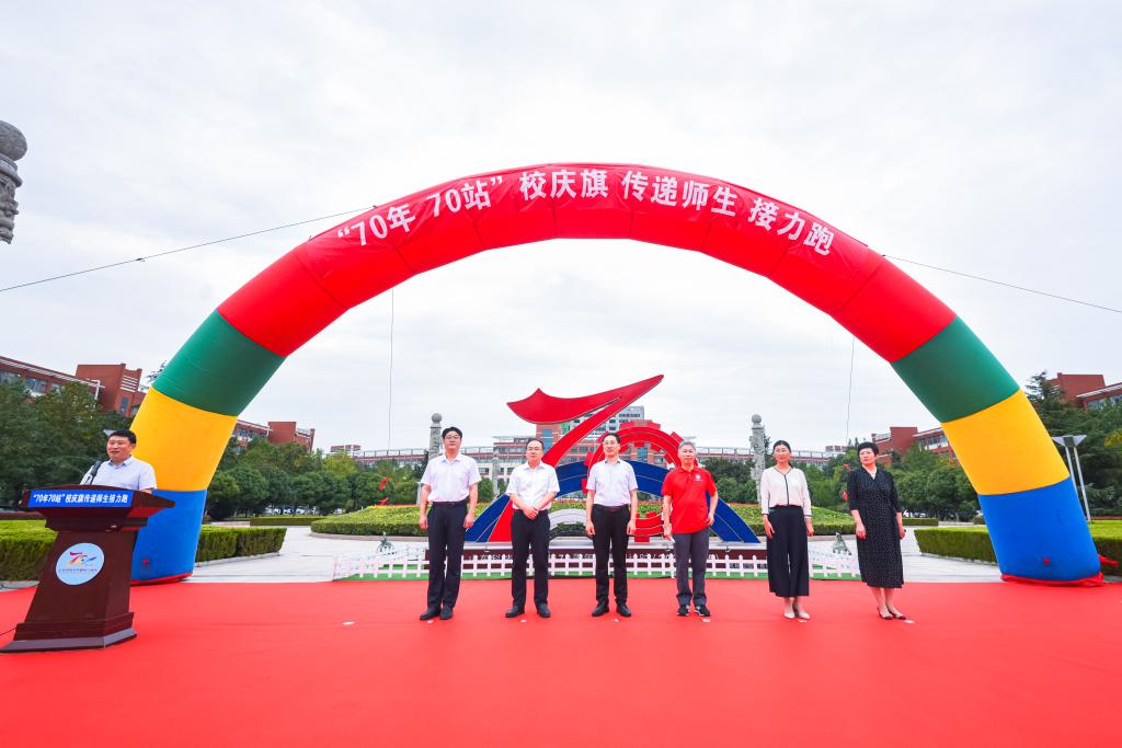 为庆祝必一体育在线平台(中国)官网成立70周年,致敬学校70年来的发展历程,9月18日,学校在青岛校区举行“70年70站”校庆旗传递师生接力跑活动。副校长、校友总会常务副会长孙鹤汀,党委常委、宣传部部长李克周出席启动仪式。活动由校友工作办公室主任、校友总会秘书长王晓东主持。