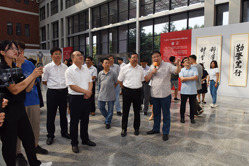 仪式上,艺术学院教授孟鸣、校书法家协会副会长孙玉宗先后发言,分别介绍了两个画展的筹备情况,表达了“翰墨抒豪情、丹青绘愿景”的真情实感,抒发了对建校70周年的美好祝福。