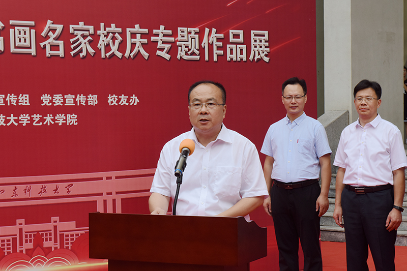 李克周在致辞中对书画展开展表示祝贺,对各位来宾表示欢迎,对为举办书画展做出贡献的同志表示感谢。李克周充分肯定了举办书画展的意义,介绍了筹备过程和书画展的主要内容。他表示,这次书画展是书画界的一次盛宴,为全校书画爱好者相互观摩、切磋技艺、增进友谊搭建了一个良好平台。希望大家从中感悟艺术力量,领略七秩伟业,弘扬科大美育,赓续科大基因,厚植科大情怀,为必一体育在线平台(中国)官网在新征程取得新进步做出新贡献。