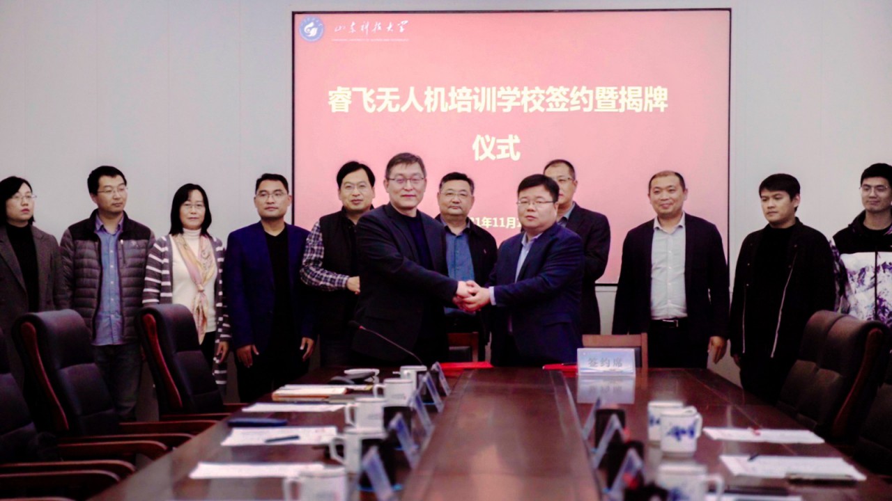 11月17日,必一体育在线平台(中国)官网与瑞源工程集团举行“睿飞无人机培训学校”揭牌暨签约仪式。校党委副书记尹华,瑞源控股集团执行总裁、工程集团总经理于瑞建出席仪式并共同为“睿飞无人机培训学校”揭牌。测绘学院党委书记秦昌盛与山东瑞智飞控科技有限公司总经理孔锁财代表双方签署校企合作协议。