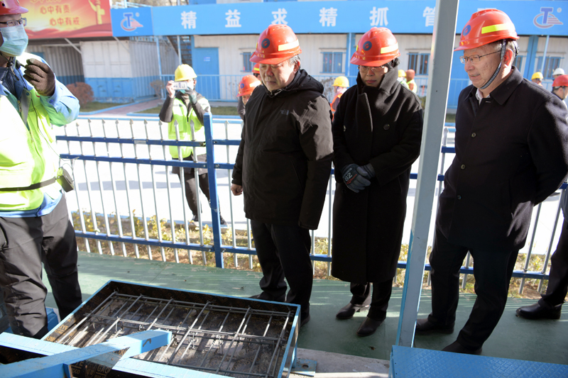 封顶仪式结束后,与会领导和嘉宾实地参观了样板展示区和研究院大楼一楼大厅。