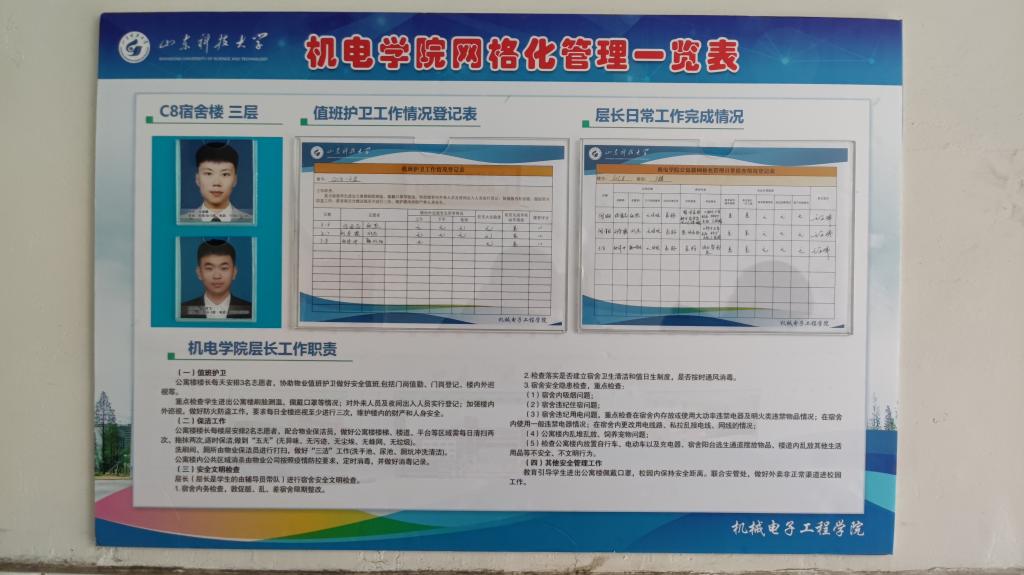 学校领导分别牵头疫情防控各专项工作组,分区片做好专项工作,学校领导,各部门主要负责人、各单位党政主要负责人分别担任区域网格长和部门单位网格员,他们带领相关工作人员吃住在教学区;学生管理干部、辅导员入住学生宿舍,建立“区长-楼长-层长-宿舍长”四级管理体系,24小时同学生在一起;在山海花园小区建立“校工会、业主委员会主任-区长-楼长”三级管理体系。