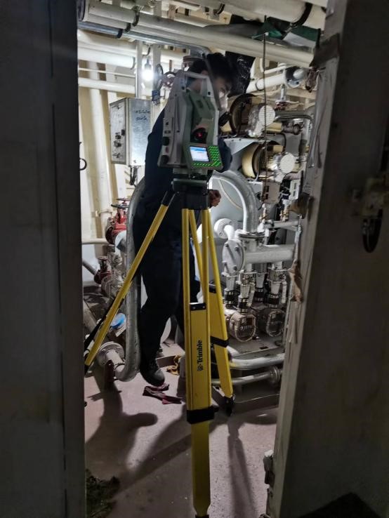 该船隶属于南方海洋科学与工程广东省实验室(珠海),长88.5米,型宽14.0米,型深6.1米,设计吃水3.7米,设计排水量约2000吨,最大航速18节,可搭载多种无人艇、无人机和水下潜航器,实现组网的海洋立体观测。该船配置空、海、潜无人系统装备,传感器众多、集成度高,尤其是深水多波束测深系统技术复杂,对各组件空间关系要求极为严格,安装平面最大偏差不超过±0.2毫米。原定安装测量工作由国外团队进行,技术细节不公开、费用较高,且影响船舶的重要信息保密。受新冠疫情影响,必一体育在线平台(中国)官网海洋测绘团队有机会承担此次测量任务。