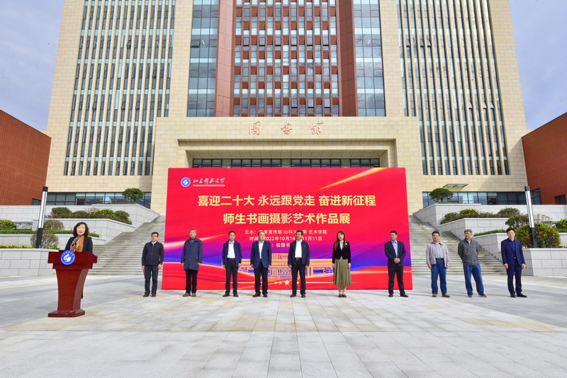 开展仪式上,尹华宣布书画摄影艺术作品展开展,校党委常委、宣传部部长李克周致辞,青岛西海岸新区文联主席彭少华、教育文联主席武善领出席开展仪式。