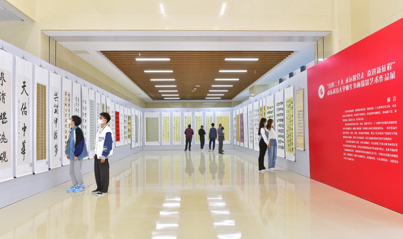 据悉,本次艺术作品展由党委宣传部、校文联、艺术学院联合主办,展览时间为10月14日至11月11日。西海岸新区文联、新区教育文联给予了大力支持,中国书协会员挥毫泼墨送来作品参展,学校广大书画摄影爱好者热情参与,共征集到书法、绘画作品81幅,摄影作品88幅及部分雕塑作品,展出作品160余幅。