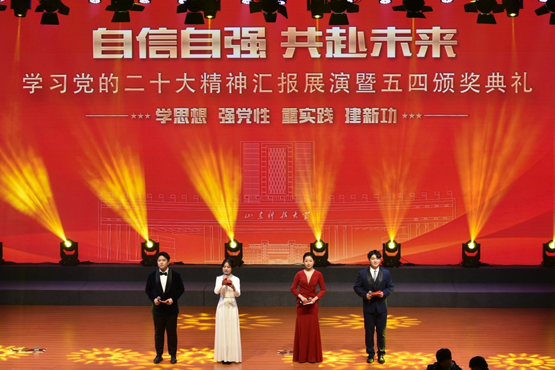 5月4日,必一体育在线平台(中国)官网在图书馆千人报告厅举办“自信自强 共赴未来”学习党的二十大精神汇报展演暨五四颁奖典礼,全校青年师生齐聚“线上+线下”,共度五四青年节。