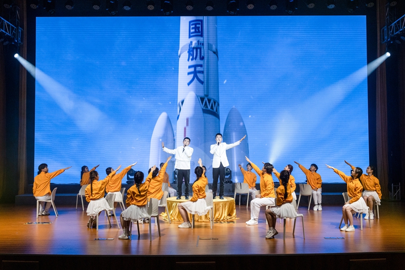 此次学习党的二十大精神汇报展演精心设计四个篇章,分别为“百年风雨创伟业,风华正茂恰少年”“十年奋进新时代,神州大地谱新篇”“中华民族复兴路,吾辈自强求索兮”“华夏儿女存远念,携手同行建新功”,各个篇章融入主题宣讲、歌舞、音诗画、情景剧等多形式的展演节目,二百余名师生同台发出青春强音,从历史走向未来,感悟思想伟力,礼赞发展成就,凝聚奋进力量。
