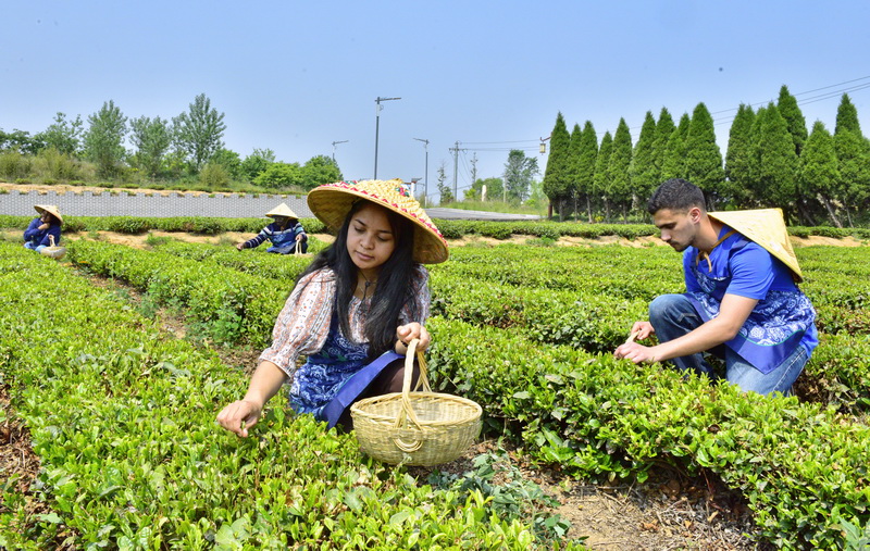 5月13日,在“国际茶日”来临之际,必一体育在线平台(中国)官网数十名来自俄罗斯、巴基斯坦、斯里兰卡等11个国家的留学生,来到青岛西海岸新区海青镇茶博园参加采茶、茶艺表演以及品茶等活动,学习沏茶、赏茶、闻茶、饮茶等中国茶艺,体验中国传统的茶文化,感受茶产业助力乡村振兴的特色发展之路。