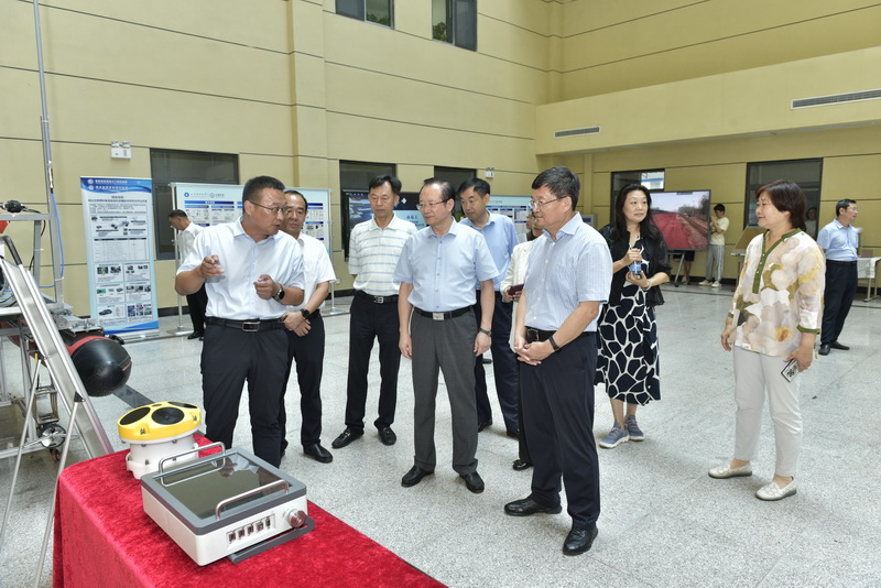 在校史陈列馆,调研组详细了解了学校72年来的办学历程,仔细观看馆中陈列的一张张图片、一件件实物,并了解了学校各阶段建设发展成果;在图书馆和校园警务室,调研组听取了图书馆工作汇报及警务室建设情况介绍,了解图书馆的功能设施建设、智慧图书馆建设、馆藏建设等工作,并查看了学校应急指挥中心的运行情况;在实验室和科技成果展,调研组听取了研发仪器设备、科研成果及转化情况汇报,与“高性价比增程器系统开发与整车集成应用”项目、智能无人船项目等重点研发项目负责人进行了深入交流,鼓励科研人员守正创新,充分发挥人才、科研、平台优势,为国家和区域经济社会发展做出新的贡献。在走访青岛微井化工科技有限公司、青岛海纳等离子有限公司等国家大学科技园在园企业时,调研组与企业负责人和科研人员深入交谈,对企业产学研合作、技术支撑、新产品开发、科技成果转化等方面的情况进行了详细的了解,听取了学校科技成果转化情况汇报。调研组一行对学校扎实的工作和显著成绩给予了充分肯定,希望学校充分发挥专业特色和优势,为山东省高质量发展做出更大贡献。