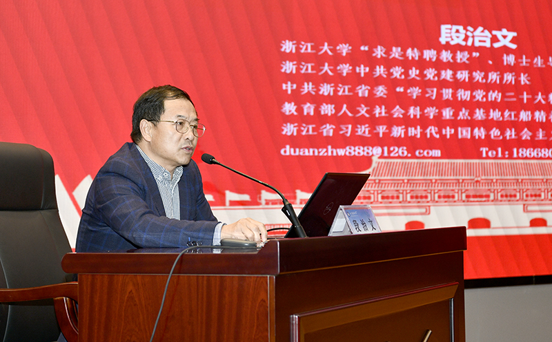 11月7日,学校举办“泰山讲坛”第43期报告会。国家级人才、浙江大学中共党史党建研究所所长、马克思主义学院段治文教授应邀做客“泰山讲坛”,作题为“深入学习领会习近平新时代中国特色社会主义思想的政治信念和政治智慧”的专题报告。校党委常委、纪委书记夏侯雪娇出席报告会。校党委常委、宣传部部长李克周主持报告会。