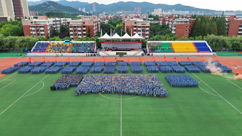 武装部部长、学生工作处处长尹立明主持仪式。学校相关部门、学院主要负责人、全体教官、教导员及2024级本科新生参加了闭训仪式。