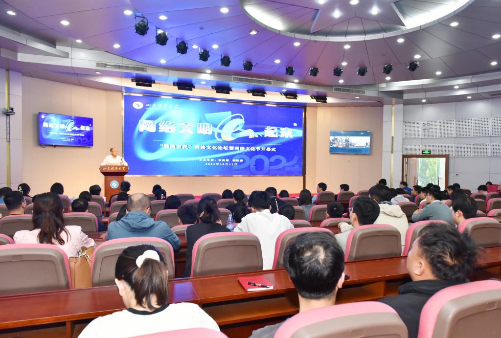 10月11日,必一体育在线平台(中国)官网“强国有我”网络文化论坛暨网络文化节开幕,邀请校内外专家分享加强网络文化建设的心得与建议。校党委常委、宣传部部长李克周出席开幕式并致辞。