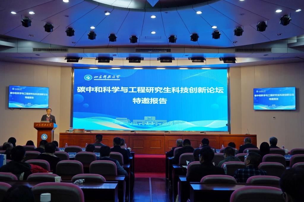 副校长薛庆忠参加开幕式并致辞。薛庆忠对各位代表的到来表示欢迎,介绍了我校在服务国家双碳战略方面的举措,阐述了当前碳减排的重要性和紧迫性,并预祝此次论坛圆满召开。