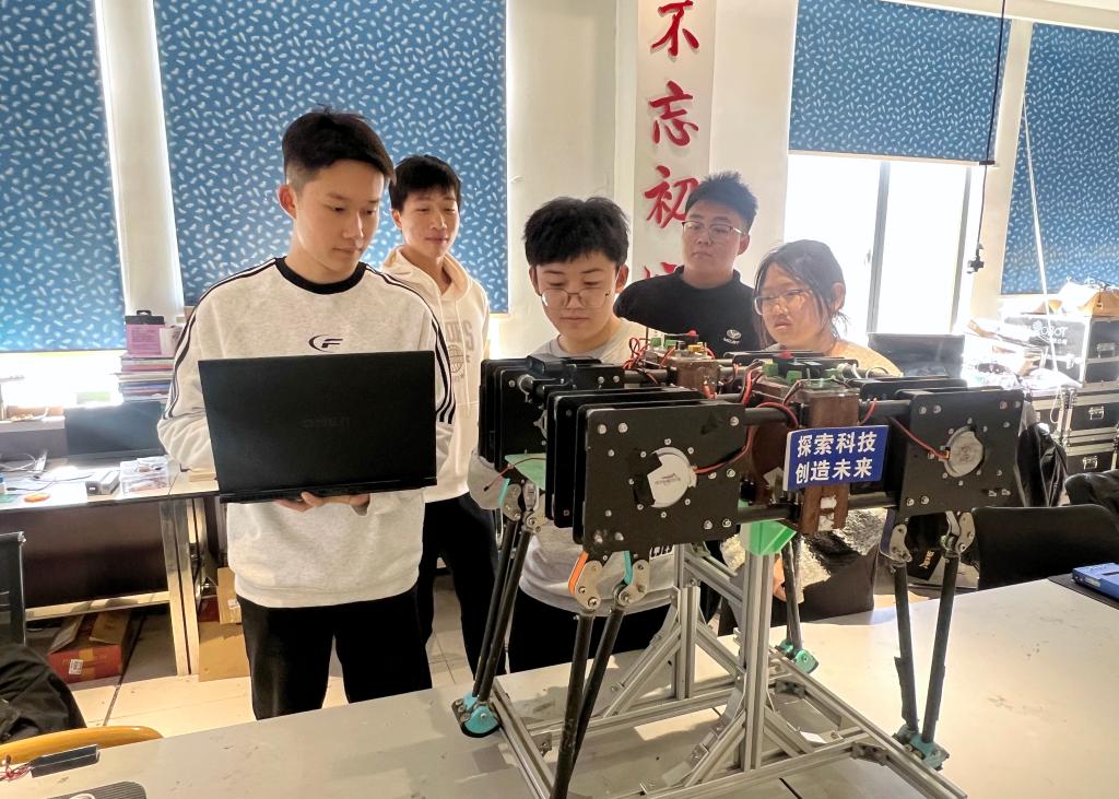 小平科技创新团队的同学们在调试科创作品
