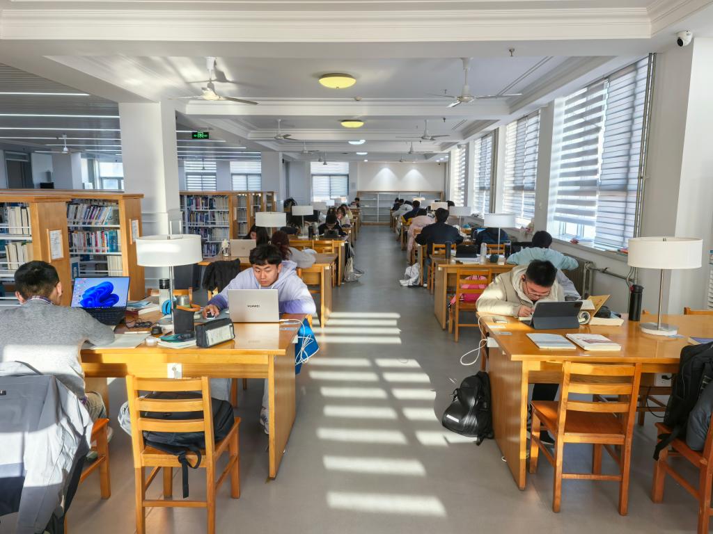 同学们在图书馆学习