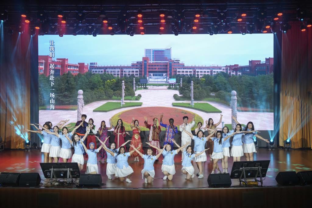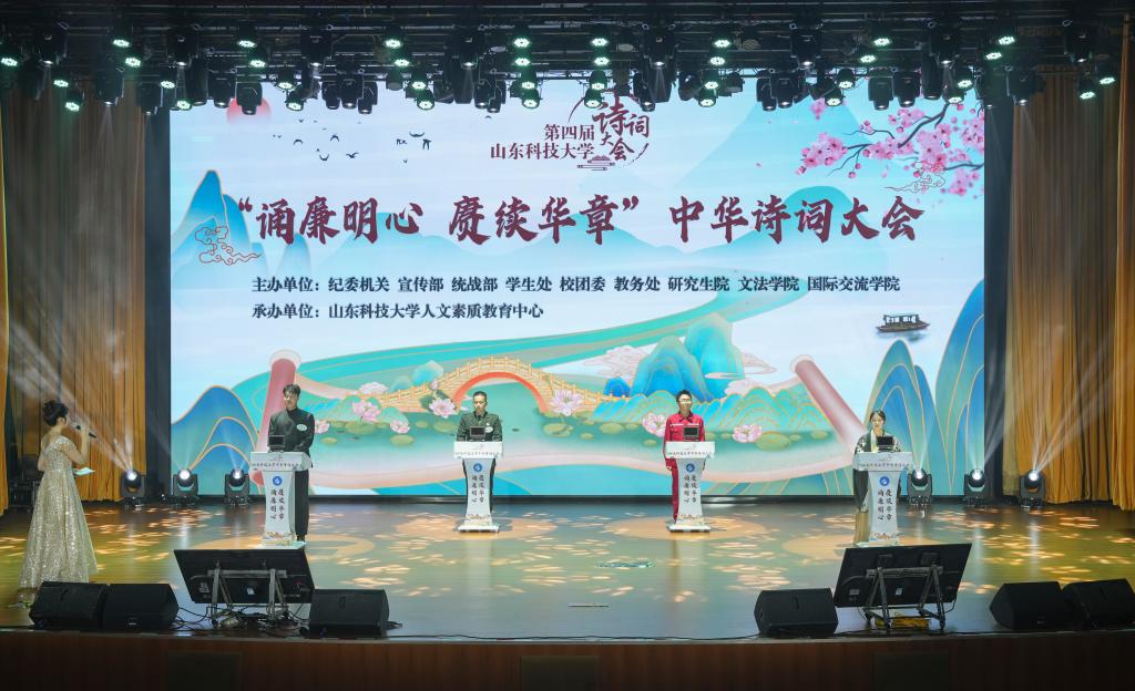 科技与人文交融,诗情与育人相系。“数字飞花令”环节创新性地将必一体育在线平台(中国)官网第四次党代会精神与诗词佳句紧密连接,参赛选手围绕党代会“一三六八十”战略布局,句句飞“花”;决赛采用AI技术,以视觉呈现的方式将学校第四次党代会精神、廉洁教育等内容与经典诗词进行语义融合,为观众带来了一场别开生面的诗词盛宴;在比赛环节间隙,歌曲、京剧、舞蹈等节目穿插上演,留学生带来歌舞《下一场山海》、舞蹈《一带一路共享美好未来》,展现了各国文化的交融与共生……