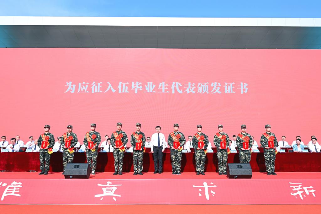曾庆田代表学校向圆满完成学业的2025届全体本科毕业生表示热烈的祝贺和深情的祝福,向为此付出辛劳的老师、家长致以崇高的敬意和衷心的感谢。他号召毕业生努力成为胸怀大局的奋楫者、攻坚克难的搏击者、开拓创新的先行者、崇德向善的示范者,用十年的奋斗历程,向祖国、向时代、也向母校,交出一份无愧于青春的精彩答卷。