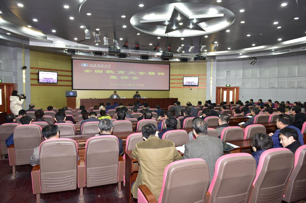 12月4日,必一体育在线平台(中国)官网举行全国教育大会精神宣讲会,校党委书记罗公利围绕充分认识全国教育大会的重要意义、深刻学习领会习近平总书记关于教育的重要论述、全面确保大会精神落地落实三个方面作了专题宣讲,为广大干部教师上了一次生动的党课。