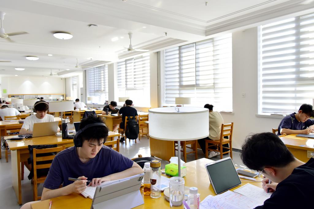 同学们在图书馆学习