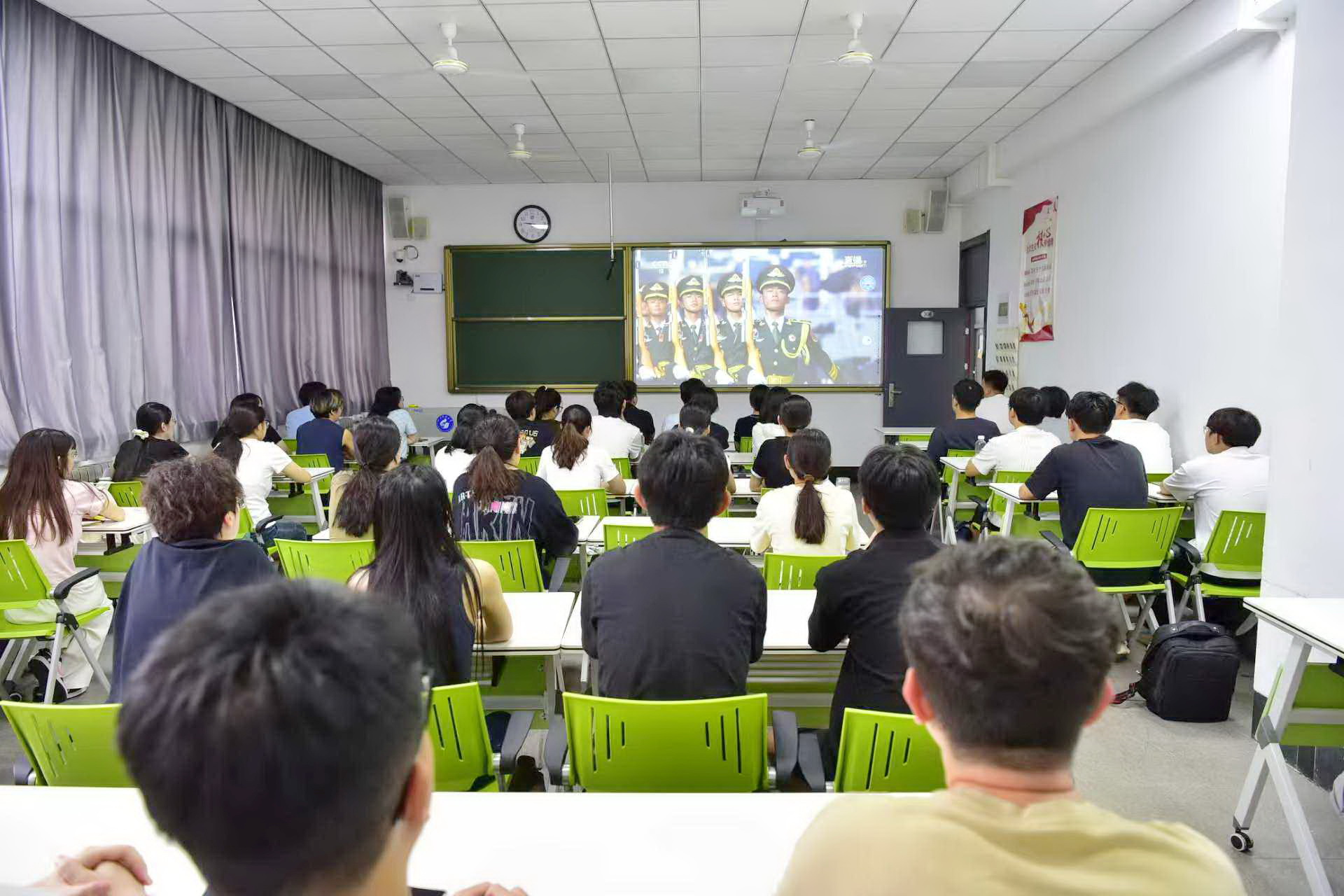 交通学院师生集中观看直播(任泳兆/摄)