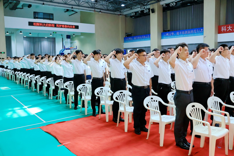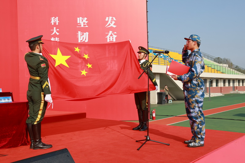 典礼上,教师代表、教官代表、学生代表等分别发言,表示将精心施教、科学安全施训、勤奋用功学习。典礼同步举行了佩戴校徽及宣誓仪式,与会领导、专家学者为新生代表佩戴校徽,全体新生面对国旗进行宣誓,立下了“爱党爱国,牢记使命;爱校荣校,勤学笃行;惟真求新,敢于担当;坚韧不拔,发奋图强;不忘初心,勇做新时代追梦人”的铮铮誓言。
