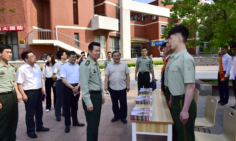 与会人员共同观看了我校形象宣传片、征兵宣传片以及学生展演的国防教育文艺演出,参观了我校征兵工作站建设和武器装备展,现场进行了政策解读,对我校实行“多柜台、同时段、一站式”征兵服务模式和卓有成效的国防教育工作表示高度赞赏。