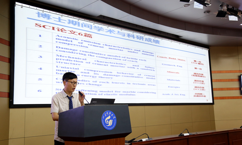 本次参加答辩的同学,包括6名博士研究生和9名硕士研究生。6名博士中,发表高水平论文和参与科研项目已成标配,而2017级的博士研究生顾清恒更是以参与多项国家基金项目引起关注。据顾清恒介绍,他作为负责人或主要研究人员,参与国家重点研发计划项目1项、国家自然科学基金3项、省部级课题2项,作为矿业学院的博士生,他的博士研究方向“浅埋弱胶结岩层流变损伤破裂演化及致灾机理”就是国家自然科学基金(面上项目),同时他参与的三项企业委托的三项横向课题已结题,鉴定结果均为国际领先。