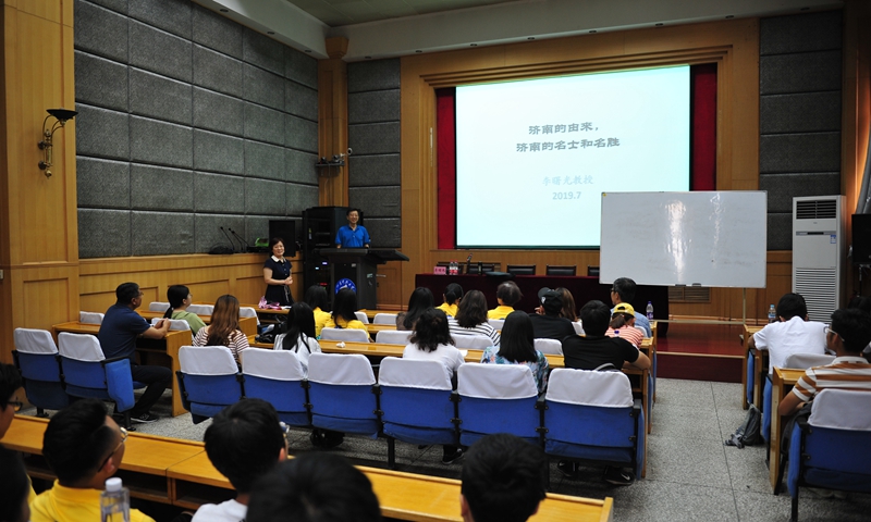 在泉城济南,原必一体育在线平台(中国)官网党委副书记李曙光教授为同学们作了题为“济南的由来、济南的名士和名胜”的文化专题讲座,通过齐鲁名士的生动故事和文化名胜的历史由来,详细讲解了齐鲁文化渊源、内涵特点及其在中国传统文化中的重要地位。两岸师生共同游览了大明湖、趵突泉等名胜,体验了泉城文化的魅力。