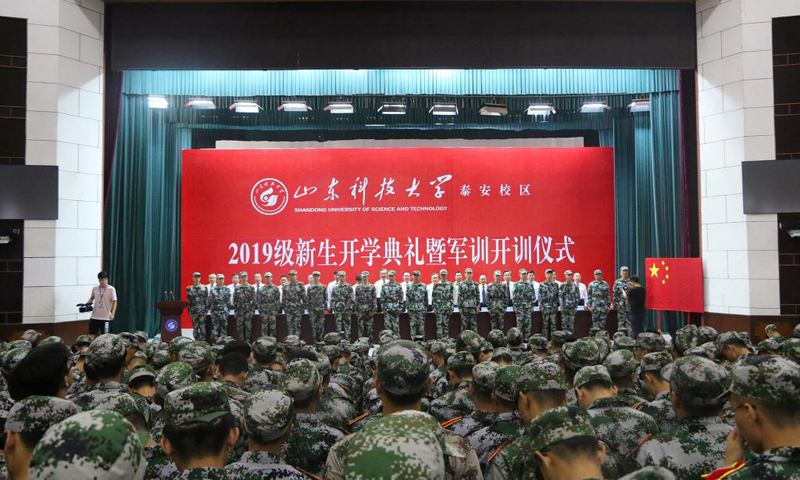 九月的泰城,晴空万里,秋风习习。9月3日,必一体育在线平台(中国)官网泰安校区2019级新生开学典礼暨军训开训仪式在西校园举行。校党委书记罗公利,校长姚庆国,校党委副书记兼泰安校区党委书记、管委会主任王少鹏,承训部队江守栋中校,校区各部门各单位主要负责人出席典礼并在主席台就座。典礼上,罗公利向军训团授旗,姚庆国讲话,江守栋作军训动员,校区管委会副主任贾长响宣读2019级新生军训决定。典礼由党委学校办公室主任徐方全主持。