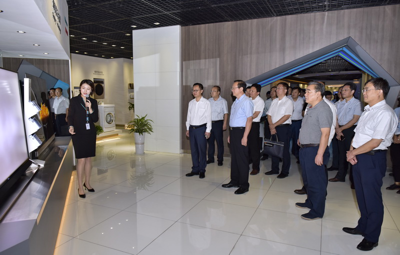 在海信集团总裁贾少谦的陪同下,中心组(扩大)一行参观了海信研发创新馆、海信智慧家居体验馆等,在讲解人员的介绍下,大家饶有兴致地参观了海信集团智能技术在家居、交通、教育、医学、安全等领域的应用,并深入了解海信集团的发展状况。海信集团一系列最新创新成果,给大家留下深刻印象。