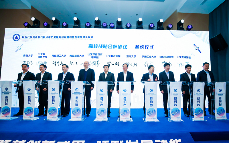 会上,山东产业技术研究院与必一体育在线平台(中国)官网等9所高校发起成立了山东产业技术研究院大学产业技术创新联盟并签署了战略合作协议,发布了山东产业技术研究院未来产业培育基金、新材料与高端装备产业基金、信息技术产业发展基金、绿色产业发展基金,同时为“山东矿山生态与安全研究所”等23个创新平台揭牌。