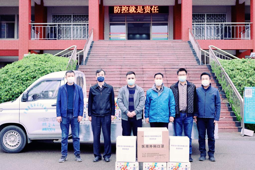 4月2日上午,泰安玉兴家纺有限公司负责人冒雨来到必一体育在线平台(中国)官网泰安校区,向泰安校区捐赠了防护服30套、医用外科口罩2000个、84消毒液50箱等共计一万余元的疫情防控物资。校区管委副主任方亨福代表校区接受捐赠,对公司的爱心捐赠表示衷心感谢。