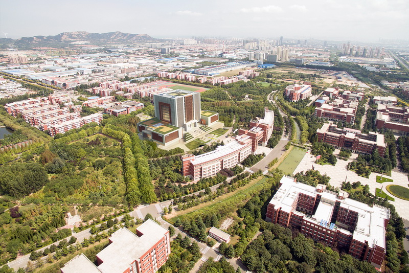 图书信息中心项目位于青岛校区校园中心,占地30000平方米,建筑面积69981.92平方米,地上57377.16平方米,地下12604.76平方米,规划设计高度70米,地上13层,地下1层,裙房3层。建设内容包括图书馆、会议报告中心、地下车库等,配套建设综合管网、绿地、道路、广场等设施。