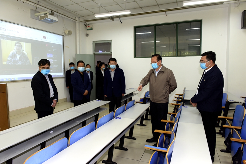 5月20日,校党委书记罗公利,党委副书记尹华,副校长高建广、李玉霞率领校属相关部门负责人,对学校2020年春季学期开学准备工作进行了全面检查。