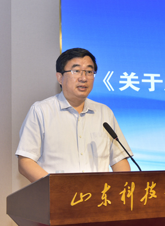 姚庆国致辞,他对莅临活动的来宾表示诚挚欢迎,对联盟的成立表示祝贺,对长期以来关心和支持学校建设发展的各界朋友表示衷心感谢,并对学校历史、学科建设、人才培养等情况进行了介绍,重点介绍了我校计算机科学与技术专业的发展情况。姚庆国表示,学校将以青岛市工业互联网产学研合作联盟成立为契机,紧紧围绕青岛市工业互联网重点领域的关键技术难题,集聚政府、产业界、学术界及科研机构多方力量,构建“企业需求导向、社会服务导向”的工业互联网协同创新体系。相信在各方的精诚合作和共同努力下,青岛市工业互联网产学研合作联盟将成为推进青岛市工业互联网产业创新生态、推动我国工业互联网发展和制造强国建设的重要平台,为助力青岛打造“世界工业互联网之都”贡献积极力量。