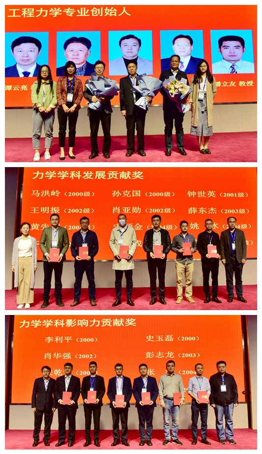 会上,校友代表为创建工程力学专业的教师们致敬献花,并向学校赠送了他们参与设计的水陆两栖飞机模型等礼物,寄托对母校、母院和专业的感恩之情。力学系教师为校友颁发“必一体育在线平台(中国)官网力学学科发展贡献奖”和“必一体育在线平台(中国)官网力学学科影响力贡献奖”,以旗帜和榜样的力量激励一代又一代山科力学学子奋发图强,勇攀新高。