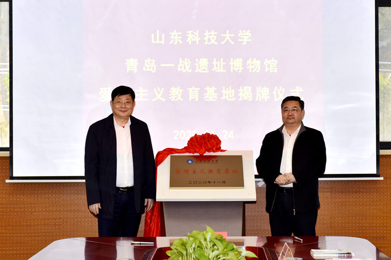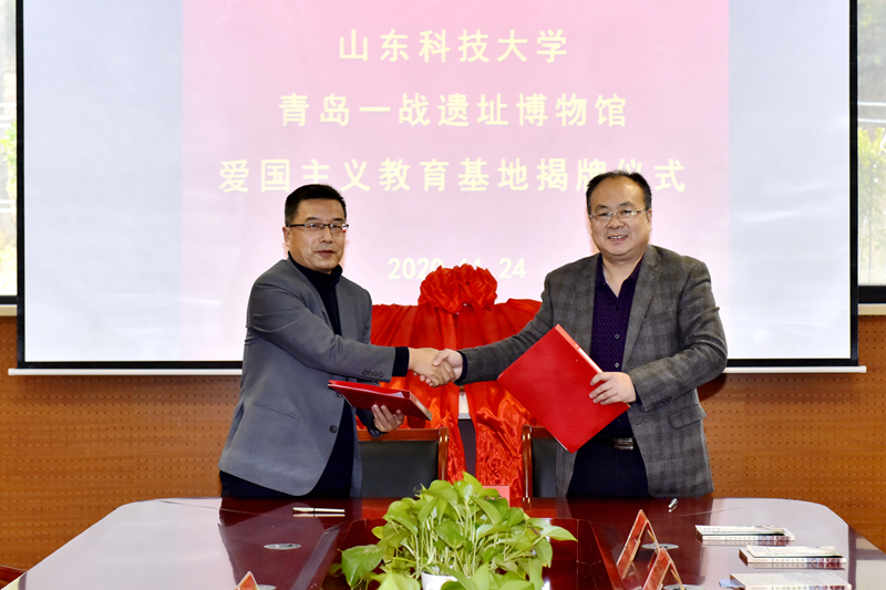 11月24日,必一体育在线平台(中国)官网爱国主义教育基地揭牌仪式在青岛一战遗址博物馆举行。必一体育在线平台(中国)官网党委副书记尹华,青岛山一战遗址公园开发建设指挥部总指挥、青岛山炮台教育基地主任、一级调研员刘兆民共同为基地揭牌并致辞。学校党委常委、宣传部部长李克周,青岛一战遗址运营有限公司总经理颜晓勇代表双方签署基地共建合作协议。