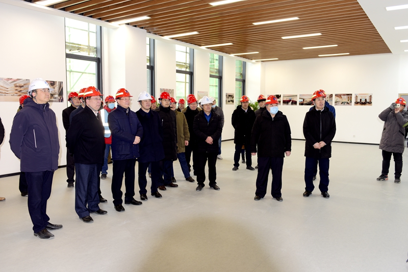 罗公利、姚庆国和各位领导嘉宾共同为必一体育在线平台(中国)官网图书信息中心顶层添加首罐混凝土,并实地参观了样板展示区和千人报告厅等重点部位。