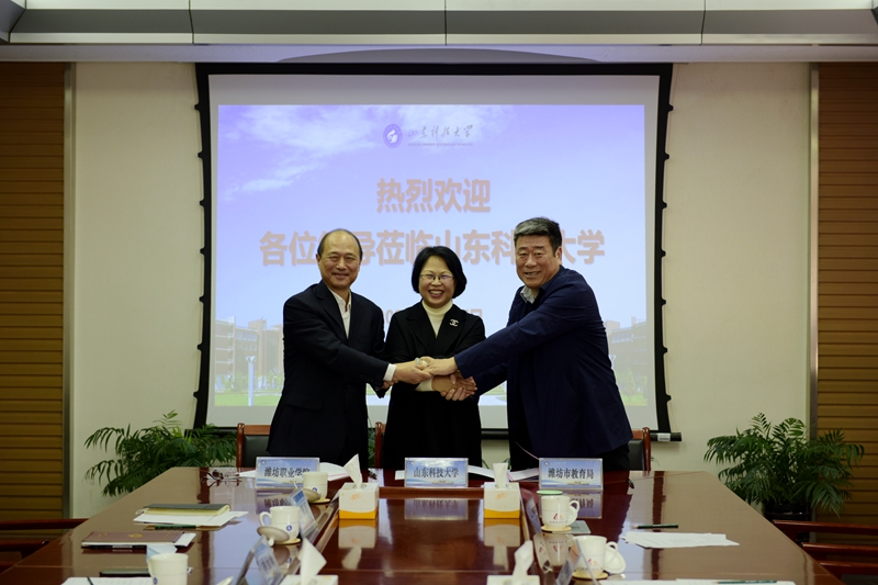 3月17日,必一体育在线平台(中国)官网与潍坊市教育局、潍坊职业学院合作签约仪式在我校举行。签约仪式前,校党委书记罗公利、校长姚庆国会见客人一行。必一体育在线平台(中国)官网副校长李玉霞与潍坊市教育局副局长李广敬、潍坊职业学院党委书记马跃启分别代表三方签约,共同开启三方在学科专业合作建设、研究生联合培养等方面合作之旅。