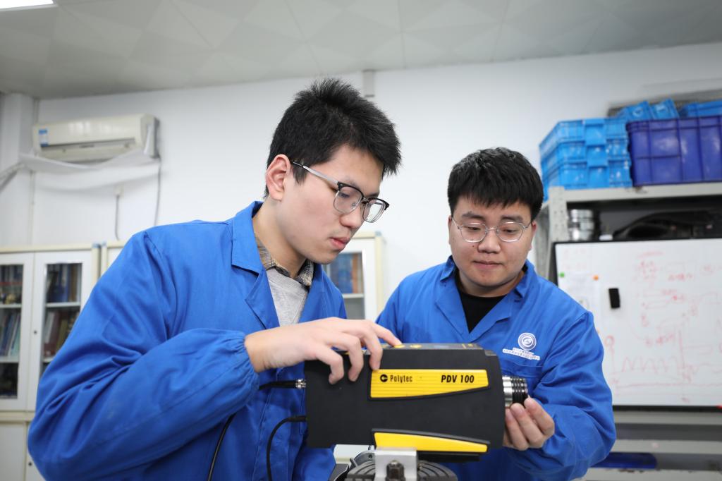 王华国(左)与同学开展创新研究