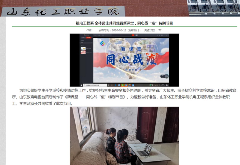 经过紧锣密鼓的筹备,《新课堂——同心战“疫”》高校复学规范培训特别节目如期提交山东省教育厅新冠肺炎疫情防控工作领导小组审核,领导小组审核通过后下发通知要求省内各高校组织学生、教师和家长认真收看。
