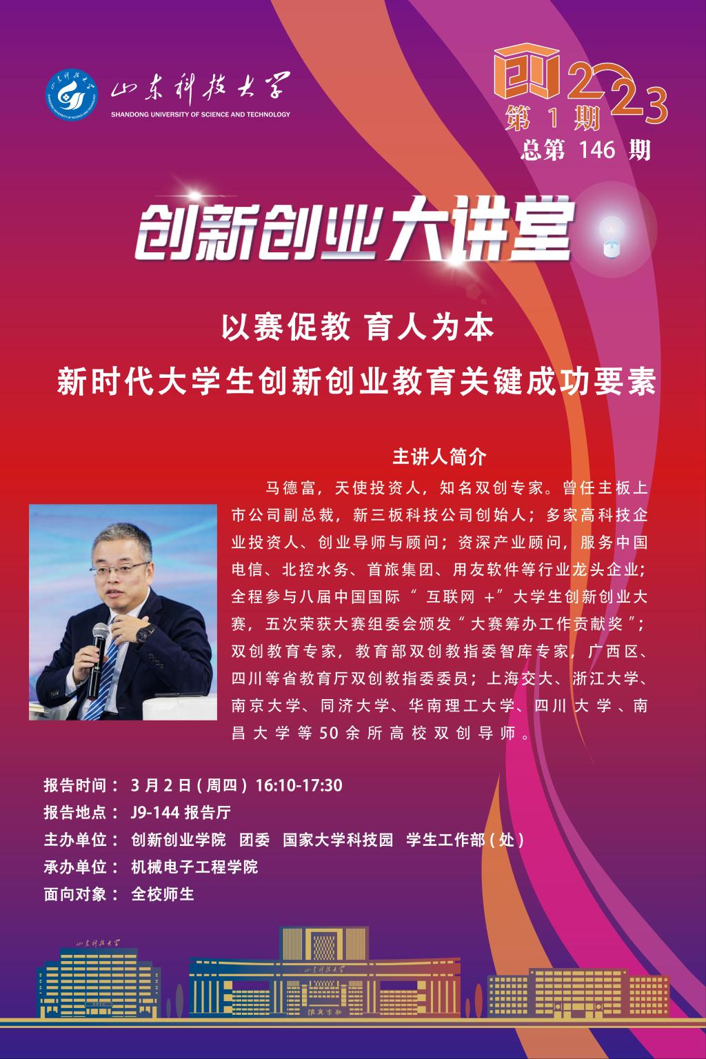 创新创业大讲堂2023第1期:以赛促教 育人为本——新时代大学生创新创业教育关键成功要素