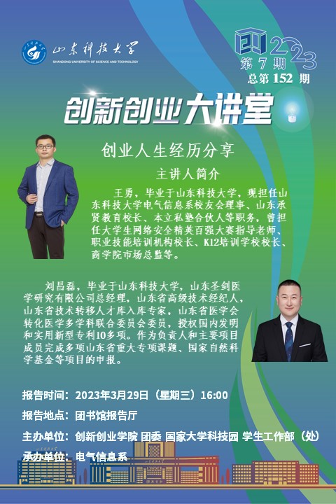 创新创业大讲堂2023年第7期:创业人生经历分享