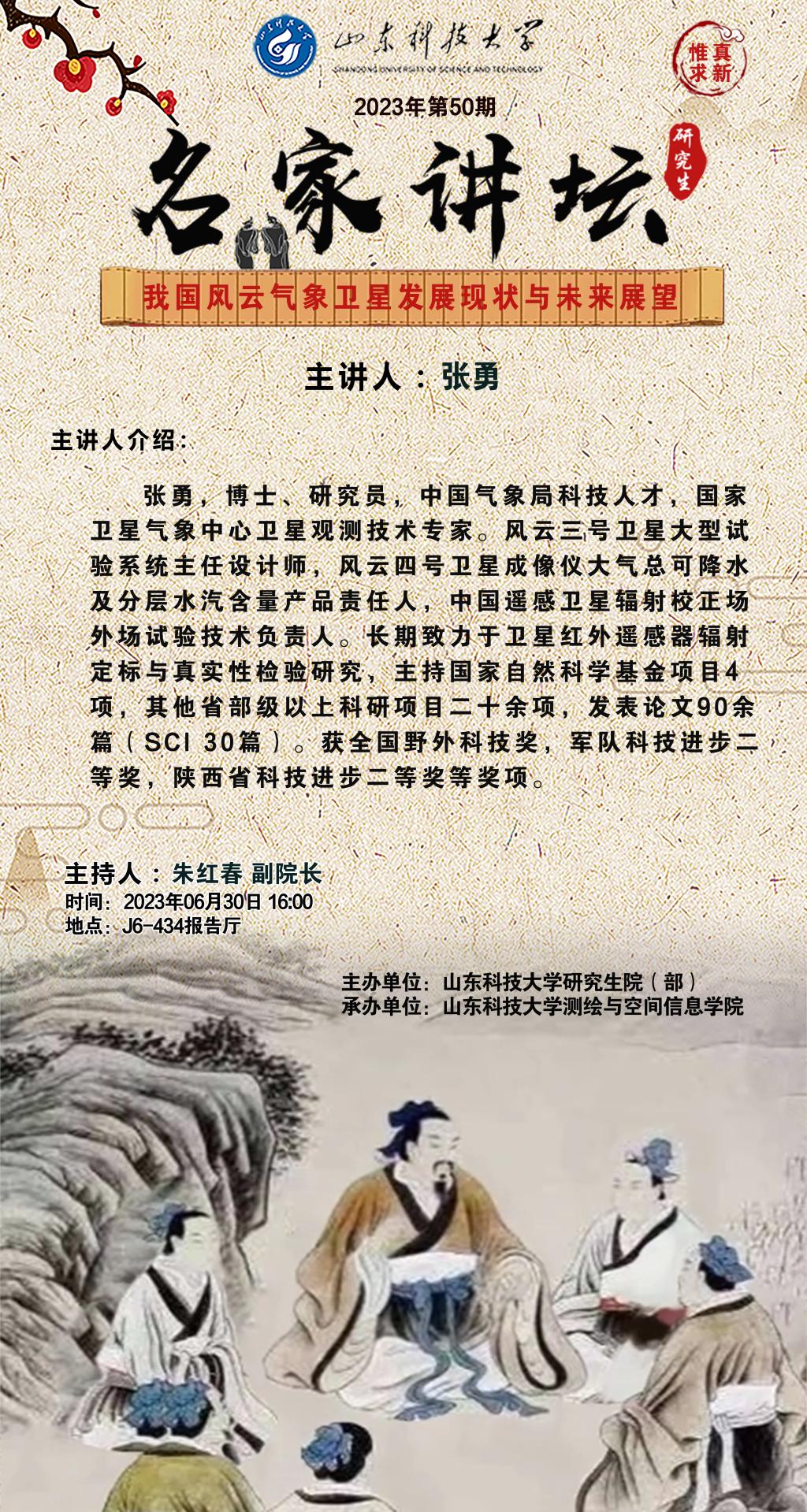 “名家讲坛”2023年第50期:我国风云气象卫星发展现状与未来展望(总851期)