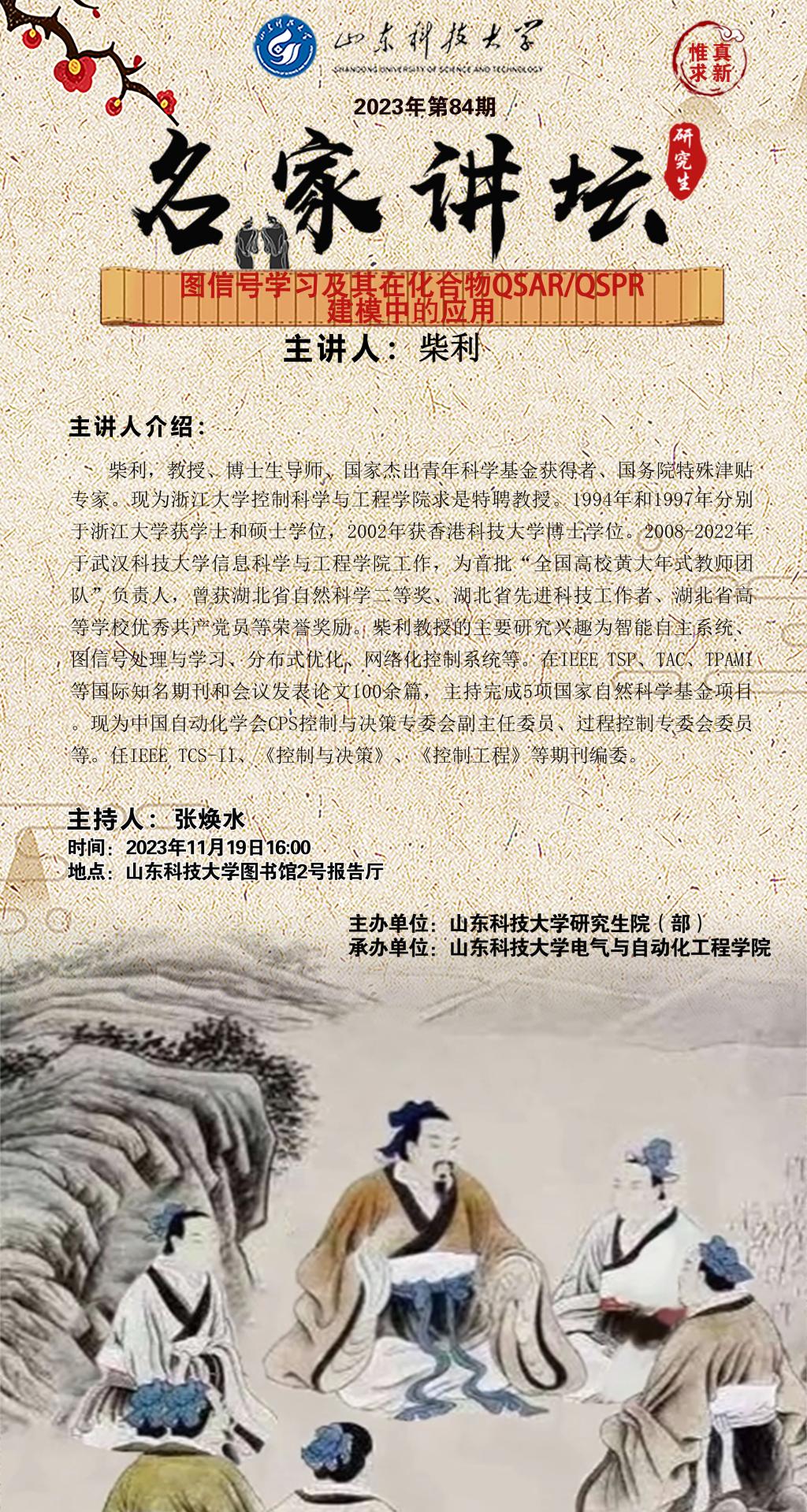 “名家讲坛”2023年第84期:图信号学习及其在化合物QSAR/QSPR建模中的应用(总885期)
