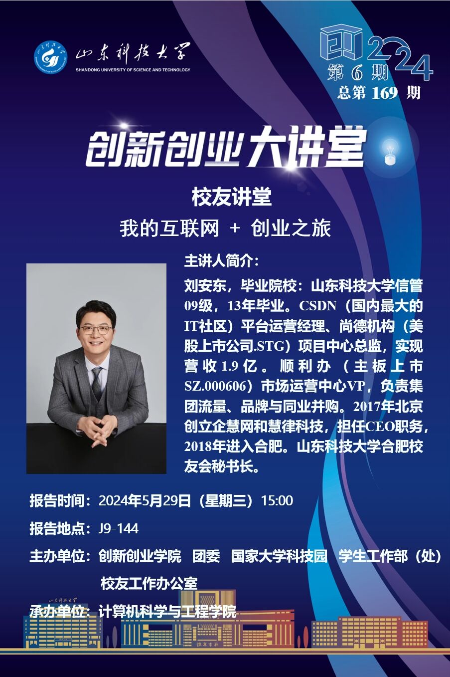 创新创业大讲堂2024年第6期:校友讲堂 我的互联网+创业之旅