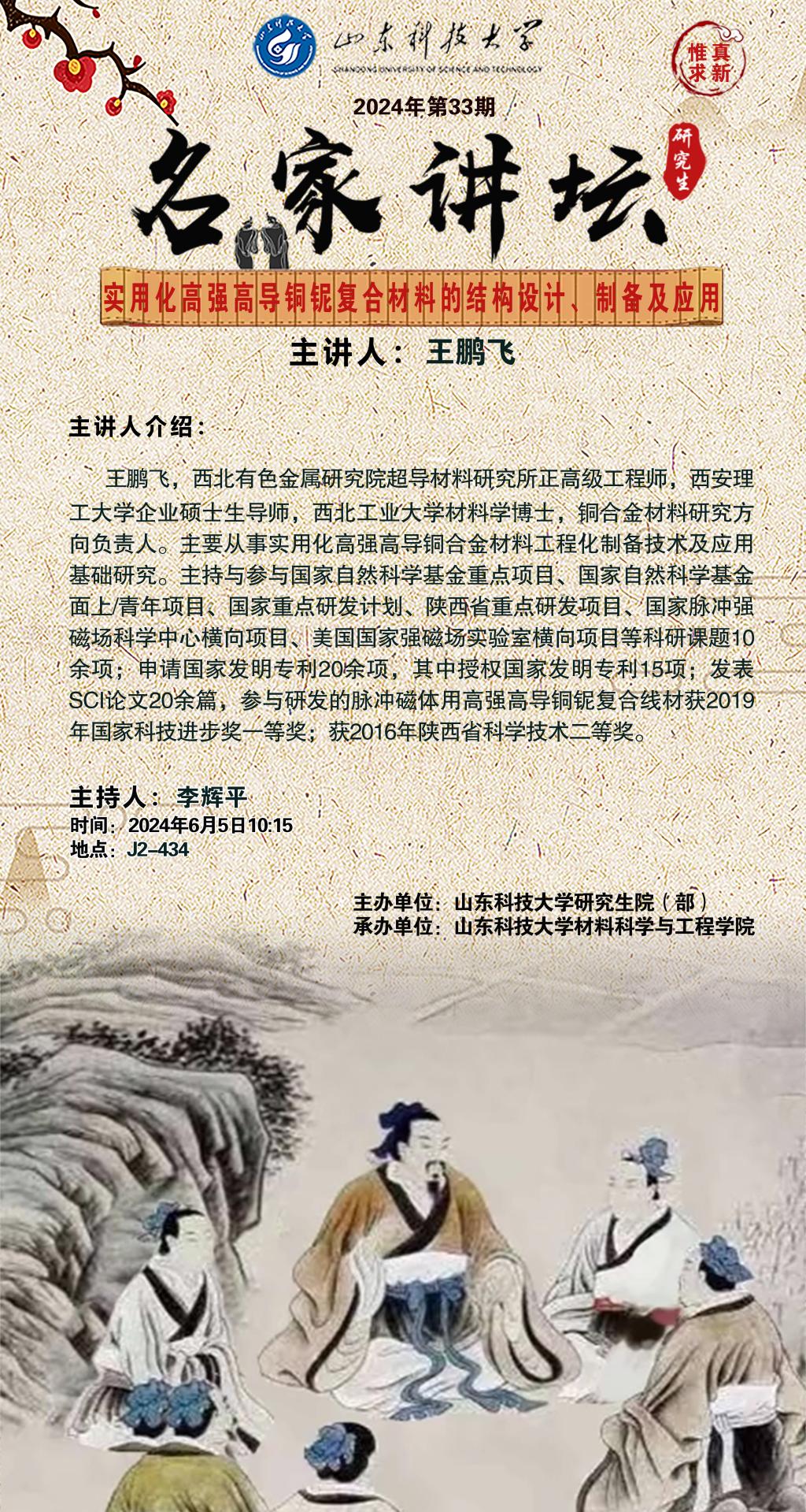 “名家讲坛”2024年第33期:实用化高强高导铜铌复合材料的结构设计、制备及应用(总927期)